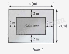 Trên một mảnh đất có dạng hình chữ nhật với chiều dài là \(x\left( m \right)\), chiều rộng là \(y\left( m \right)\) với \(x > y > 4\),