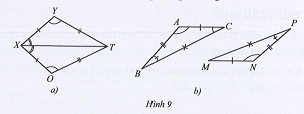 Quan sát các hình 9a, 9b, viết các cặp tam giác bằng nhau.