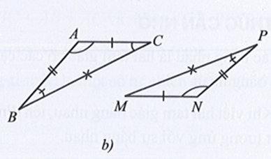 Quan sát các hình và xét các điều kiện về cạnh và góc tương ứng để viết các tam giác bằng nhau.