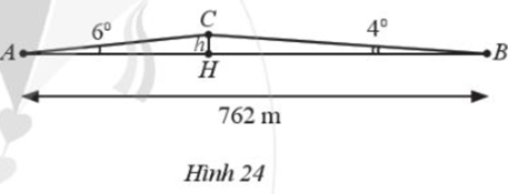Lúc 6 giờ sáng, bạn An đi xe đạp từ nhà (điểm A) đến trường (điểm B) phải leo lên và xuống một con dốc (Hình 24). Cho biết đoạn thẳng AB dài 762 m, \(\widehat A = {6^0},\widehat B = {4^0}\)