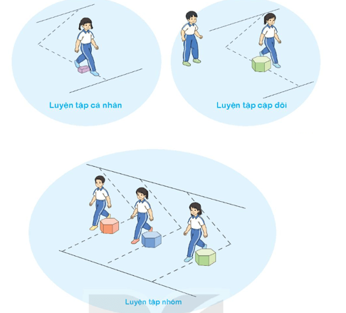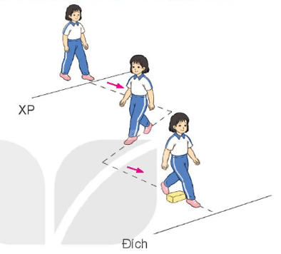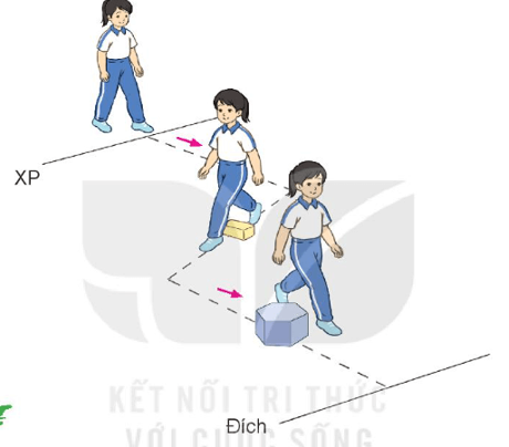 - Cách thực hiện: Từ vạch xuất phát, di chuyển theo đường gấp khúc, khi gặp chướng ngại vật nhỏ thì bước qua, hai tay phối hợp tự nhiên, mắt nhìn đường đi.