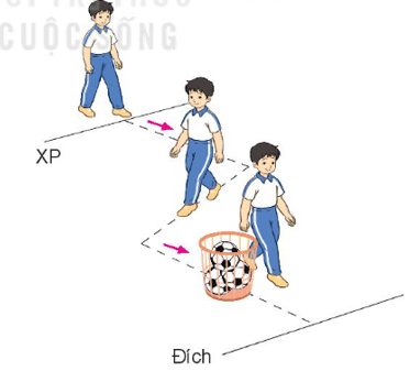- Bước 2: Các đội chơi xếp thành hàng dọc, đứng sau vạch chuẩn bị, thẳng hướng với vật đích. Em đầu hàng đứng chân trước chân sau, tay cầm mộ đồ vật.