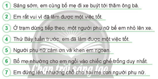 Sắp xếp các ý dưới đây theo đúng trình tự của bài văn thuật lại một việc làm tốt.