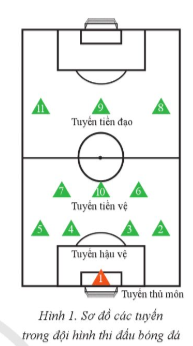 - Các tuyến trong đội hình thi đấu gồm: Thủ môn, hậu vệ, tiền vệ và tiền đạo (H.1). Cụ thể các vị trí của từng tuyến như sau: