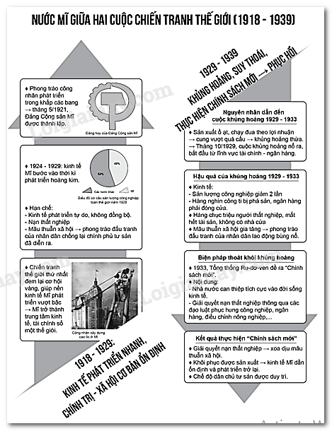 Trình bày những nét lớn về tình hình chính trị, kinh tế của nước Mỹ giữa hai cuộc chiến tranh thế giới.