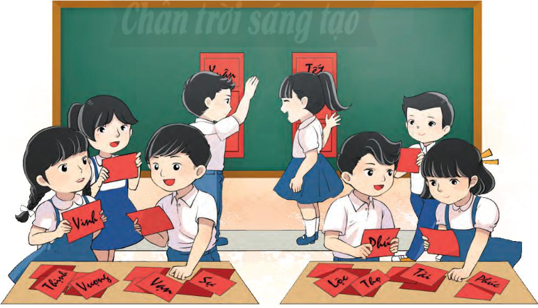 Hãy cùng các bạn trong nhóm đóng vai người thân trong gia đình để chúc Tết nhau.