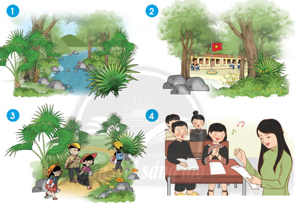 - Tranh 2: Trường của em be bé / Nằm lặng giữa rừng cây