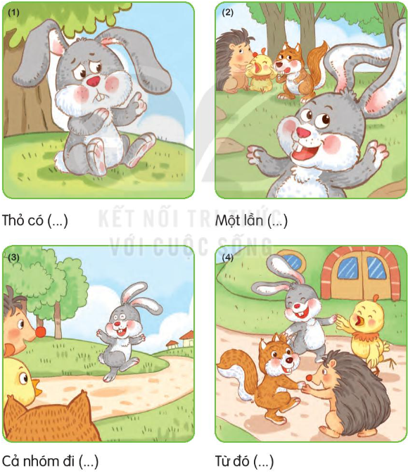 - Tranh 4: Từ đó, thỏ không còn buồn vì đôi tai nữa.