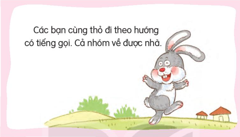 - Tranh 3: Cả nhóm đi theo hướng có tiếng gọi. Tất cả về được tới nhà. Các bạn tấm tắc khen tai thỏ thật tuyệt.