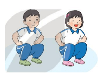 - Tay chống hông, đứng lên, ngồi xuống