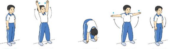- Nhịp 3: Đứng thẳng, hai tay dang ngang, bàn tay ngửa, mắt nhìn thẳng.