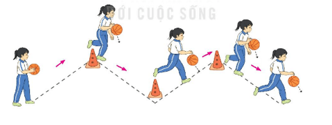 - Động tác: Đưa bóng về một tay, dẫn bóng lên trước, khi nào gặp vật cản thì dẫn bóng đổi hướng đến vật cản kế tiếp. Tiếp tục thực hiện như thế đến hết.