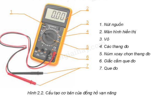 Quan sát Hình 2.2 và cho biết: Đồng hồ vạn năng có những bộ phận cơ bản nào?