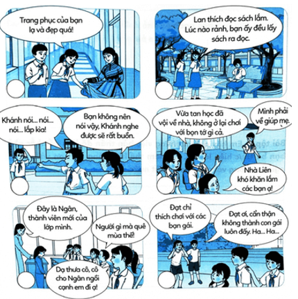 - Bức tranh 5 bạn nữ tôn trọng sự khác biệt của bạn Ngân, còn bạn nam thì không thể hiện sự tôn trọng.