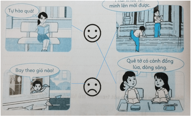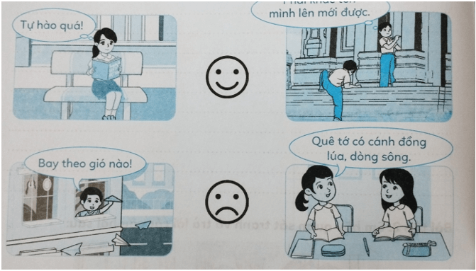 Em hãy nối mặt 😊 với hình thể hiện hành vi đúng và mặt ☹ với hình thể hiện hành vi sai trong việc thể hiện tình yêu thiên nhiên, đất nước.