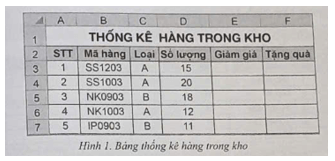 Cho bảng thống kê hàng trong kho của một cửa hàng bán điện thoại di động như Hình 1: