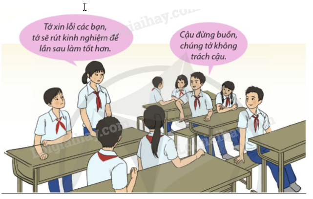 Bạn K nhận thấy lỗi lầm của mình và đã xin lỗi các bạn trong nhóm. Các bạn trong nhóm không trách mà động viên K đừng buồn => Thể hiện sự khoan dung |