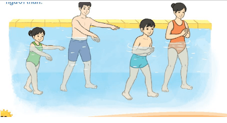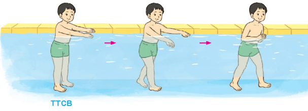 + Đứng tại chỗ khua tay dưới nước.