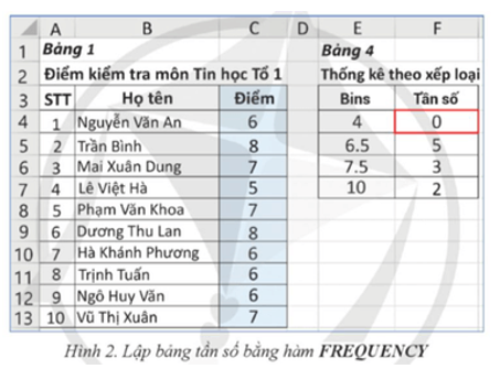 Bài 2: Lập bảng tần số bằng hàm trong Excel - Chuyên đề Tin học 12 Cánh diều>