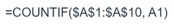 là phạm vi dữ liệu của bạn và A1 là ô mà bạn đang kiểm tra trong phạm vi đó. Hàm COUNTIF sẽ đếm số lần mà giá trị trong ô A1 xuất hiện trong phạm vi