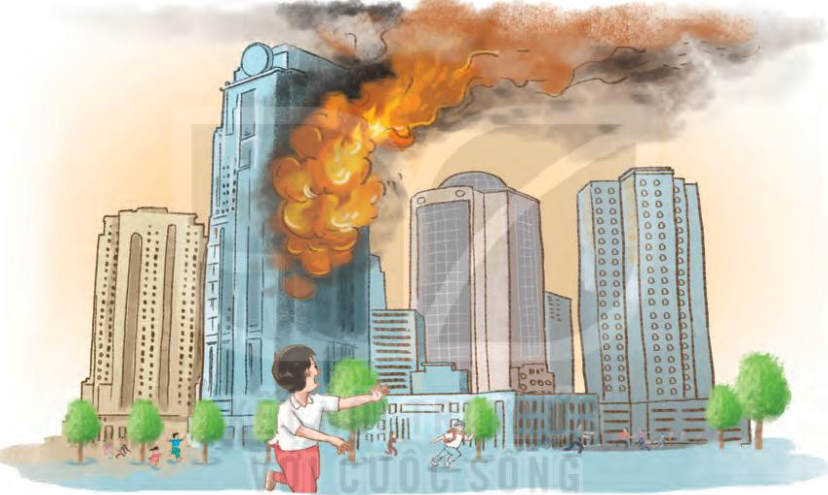 Quan sát tranh vẽ cảnh tượng ở một khu nhà cao tầng