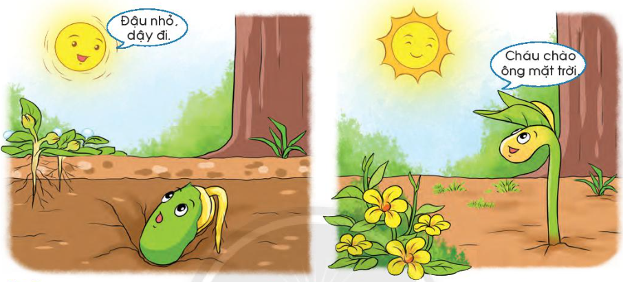 1. Những tia nắng chiếu xuống làm hạt đậu tỉnh giấc.