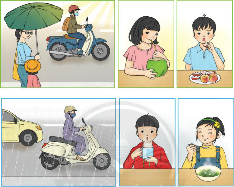 Nêu hai, ba việc em làm để bảo vệ sức khỏe trong những ngày nắng, nóng hoặc ngày mưa, lạnh.