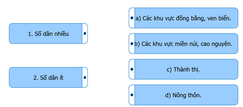 Ghép thông tin ở cột bên trái với thông tin ở cột bên phải cho phù hợp về sự phân bố dân cư ở Việt Nam năm 2021.