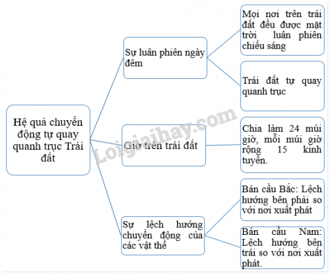 Hãy lập một sơ đồ hệ thống hóa kiến thức về hệ quả chuyển động tự quay quanh trục của Trái Đất.