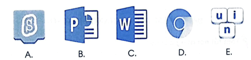 D là phần mềm duyệt web Google Chrome giúp em xem thông tin trên các trang web. A là phần mềm lập trình trực quan. B là phần mềm trình chiếu. C là phần mềm soạn thảo văn bản. E là phần mềm gõ tiếng Việt có dấu.