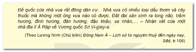 Khai thác đoạn tư liệu (trang 55, SGK), hãy xác định phương án đúng hoặc sai khi trả lời câu hỏi sau: Thương nhân nước ngoài bị hấp dẫn bởi điều gì từ Vương quốc Sri Vi-giay-a?