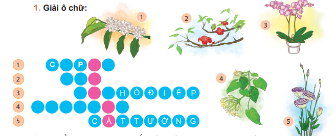 Nói về hình dáng, màu sắc của một loài hoa có trong ô chữ.