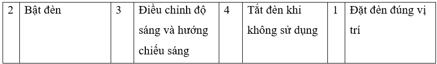 Điền vào ○ đúng trình tự các thao tác sử dụng đèn.