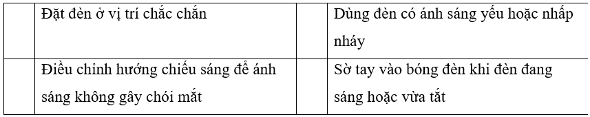 Đánh dấu x vào □ chỉ việc nên làm khi sử dụng đèn học.