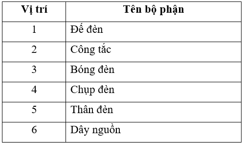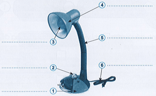 Viết tên các bộ phận của đèn học vào chỗ … cho phù hợp.