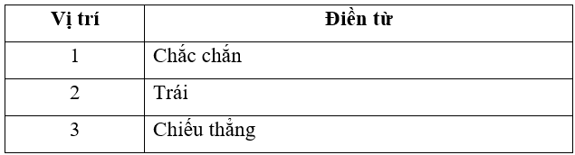 Đặt đèn học ở vị trí (1) ….. phía bên (2) ….. người học (người học thuận viết tay phải). Điều chỉnh hướng chiếu sáng để ánh sáng không (3) ……. Vào mắt, gây chói mắt.