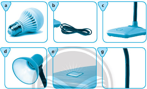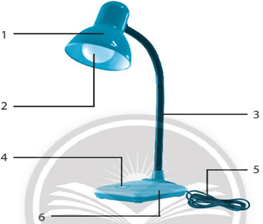 Em hãy quan sát chiếc đèn học như trong hình ảnh dưới đây và điền tên các bộ phận chính của đèn học vào bảng theo đúng số thứ tự.
