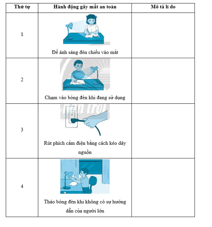Em hãy cho biết tại sao những hành động sau gây mất an toàn khi sử dụng đèn học.