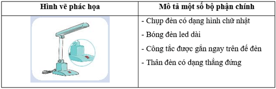 Vẽ phác họa và mô tả một số bộ phận chính của chiếc đèn học