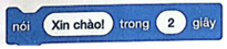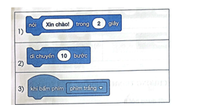 Em hãy sắp xếp thứ tự các lệnh để lập trình thực hiện: Khi gõ phím dấu cách, nhân vật sẽ hiển thị bóng nói "Xin chào!" trong 2 giây rồi di chuyển một đoạn dài 10 bước.