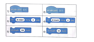 a) Khi gõ phím a, nhân vật hiển thị bóng nói “đi nhanh!” trong 2 giây rồi di chuyển một đoạn dài 100 bước.
