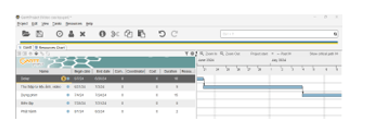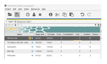 Phần mềm GanttProject hiển thị các thông tin liên quan đến dự án tại giao diện biểu đồ Gantt.