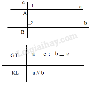 c) Giả sử có 2 đường thẳng phân biệt a,b cùng vuông góc với một đường thẳng c.