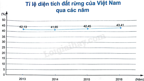 Tỉ lệ diện tích đất rừng trên tổng diện tích đất của Việt Nam từ năm 2013 đến 2016 được biểu diễn trong biểu đồ sau: