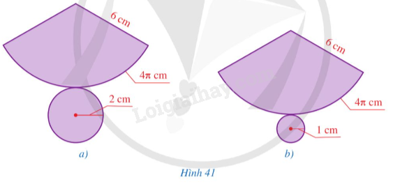 Trong số những miếng bìa có dạng như ở các hình 41a, 41b, miếng bìa nào có thể gấp và dán lại để được hình nón (có đáy)?
