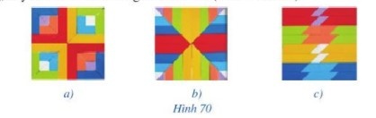 Trong Hình 70, các hình từ a) đến c), hình nào có tâm đối xứng? Nếu là hình có tâm đối xứng, hãy chỉ ra tâm đối xứng của hình đó ( kể cả màu sắc)