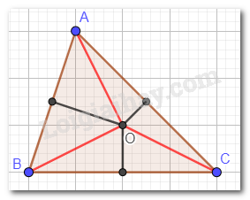 Điểm O cách đều ba đỉnh A, B, C hay điểm O chính là giao điểm của ba đường trung trực của tam giác ABC.