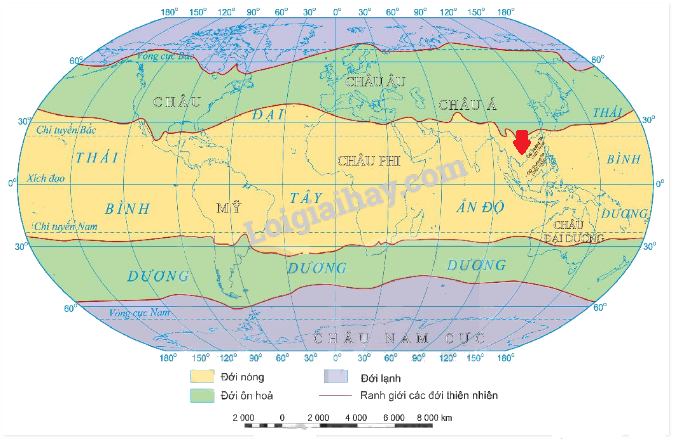 Hình 2. Các đới thiên nhiên trên Trái Đất
