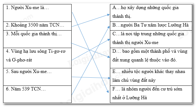 Nối các dữ kiện ở cột bên trái với cột bên phải sao cho phù hợp.