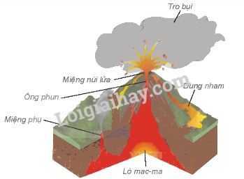 Hình 1. Cấu tạo và hoạt động của một núi lửa